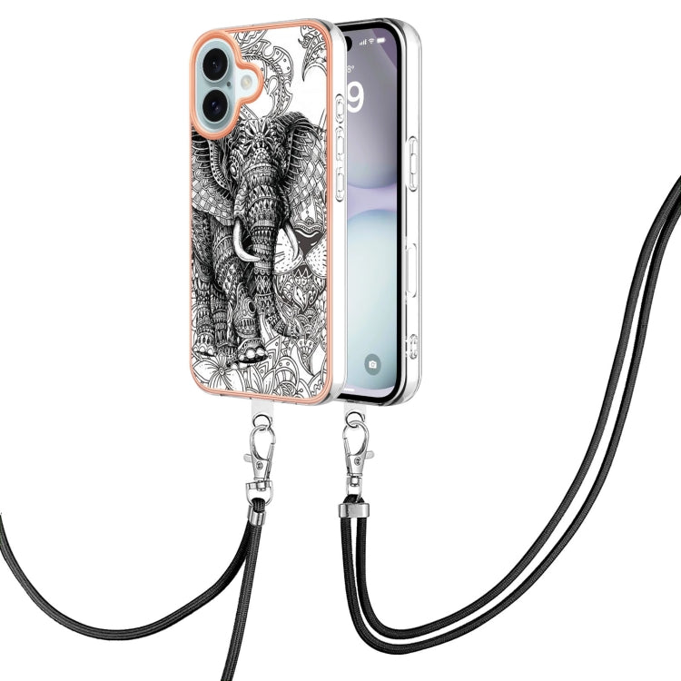 Estuche para Teléfono IMD Doble Cara con Galvanoplastia y Cordón para iPhone 16 (Elefante Tótem)