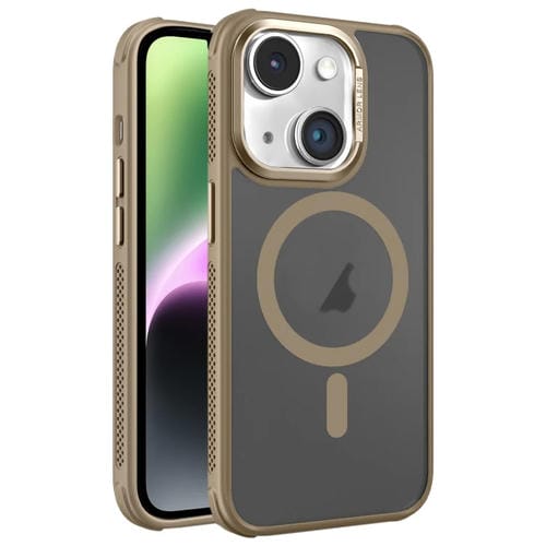 Estuche para Teléfono Magsafe iPhone 14 Marco Metal Esmerilado Piel Enfriamiento (Dorado)