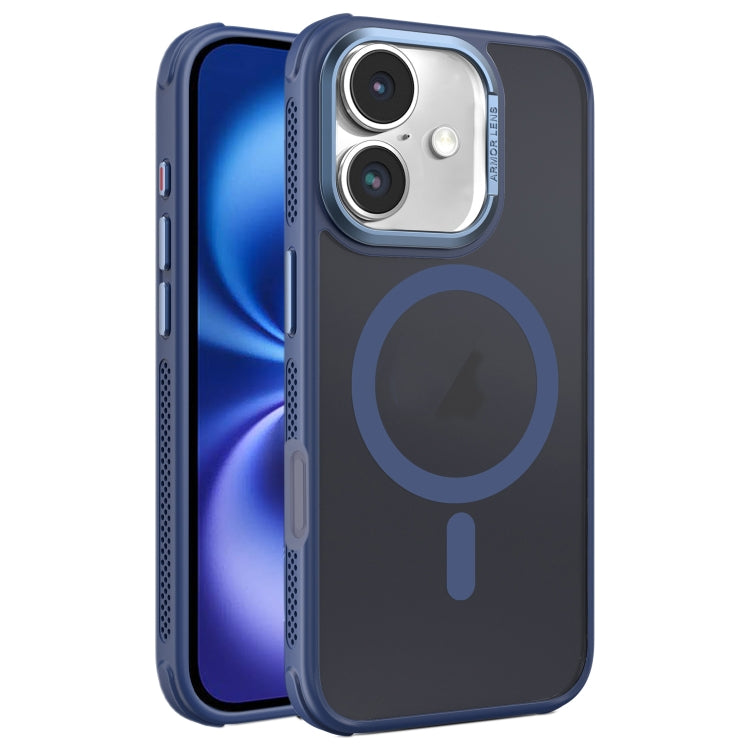 Estuche para Teléfono Magsafe iPhone 16 Marco Metal Esmerilado Sensación Piel Enfriamiento Lateral (Azul)