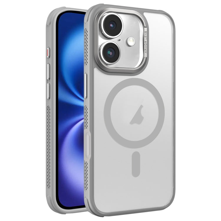 Estuche para Teléfono Magsafe Marco Lente Metal Esmerilado Sensación Piel Enfriamiento Lateral para iPhone 16 (Gris)