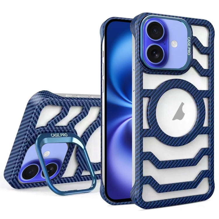 Estuche para Teléfono Magsafe con Soporte y Protección de Lente Fibra de Carbono para iPhone 16 (Azul)