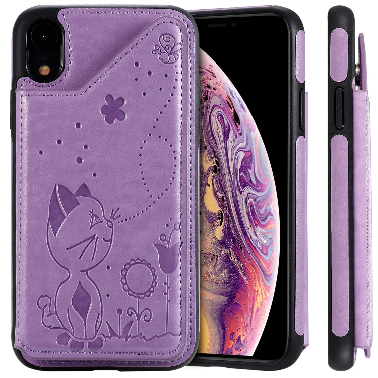 Estuche Protector iPhone Xr con Patrón de Abeja y Gato Ranuras y Marco (Púrpura)