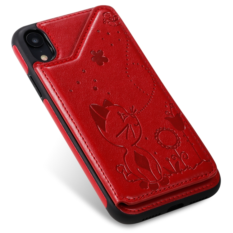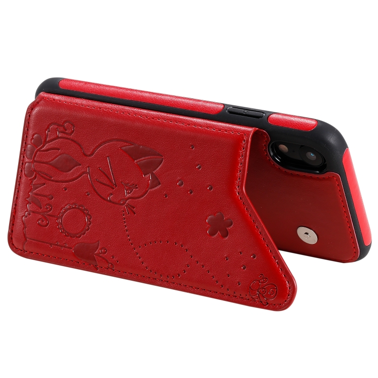 Estuche Protector iPhone Xr Estampado Abeja y Gato Ranuras Tarjetas Marco Fotos (Rojo)
