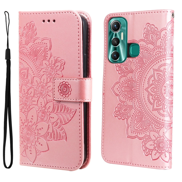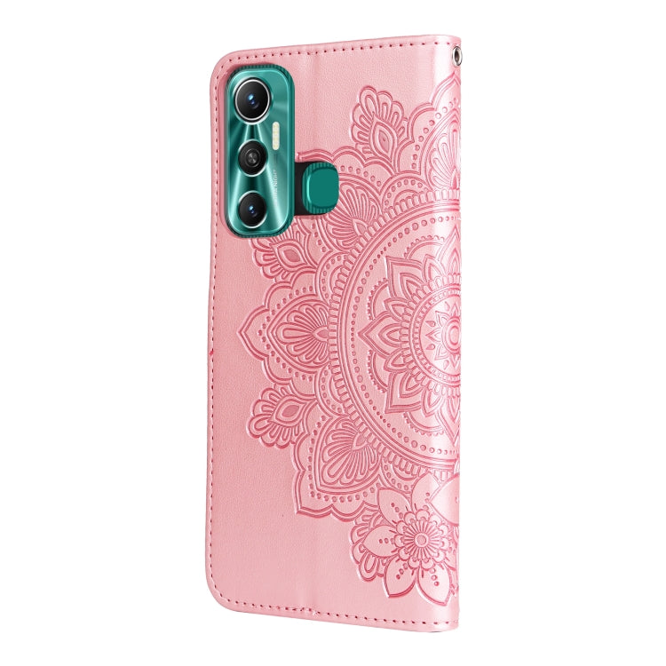 Funda Horizontal Flip de Cuero para Infinix Hot 11 con Relieve 7-Petal Flowers (Rose Gold)