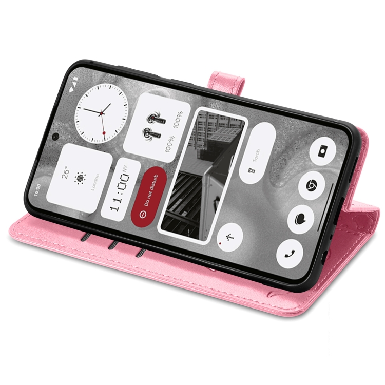 Estuche para Nothing Phone 2 de Cuero con Relieve de Gato y Perro (Rosa)