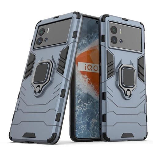For Vivo Iqoo 9 5G Funda Protectora a Prueba de Golpes PC + TPU con Soporte de Anillo Magnético (Azul Marino)