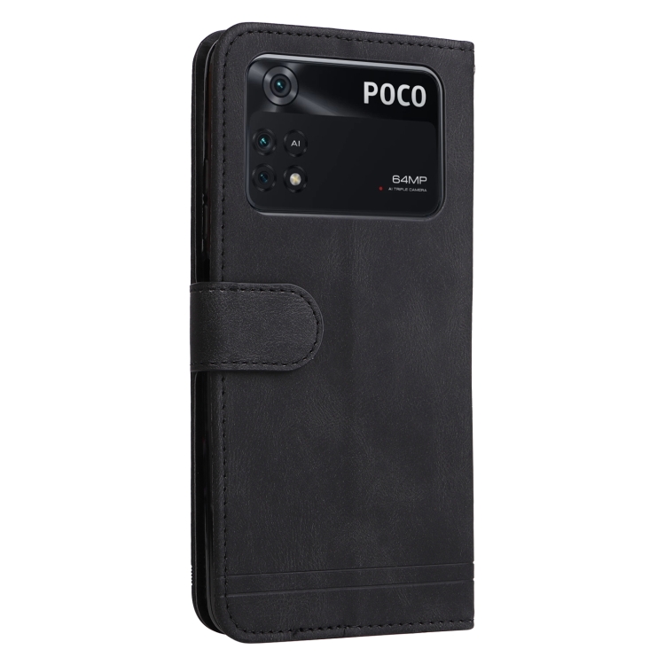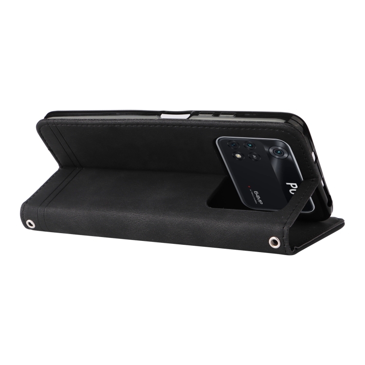 For Xiaomi Poco M4 Pro 4G Skin Feel Life Tree Metal Button Horizontal Flip Leather Case(Black)