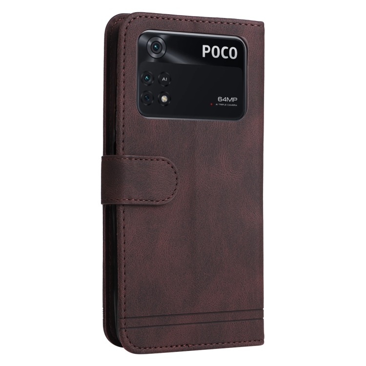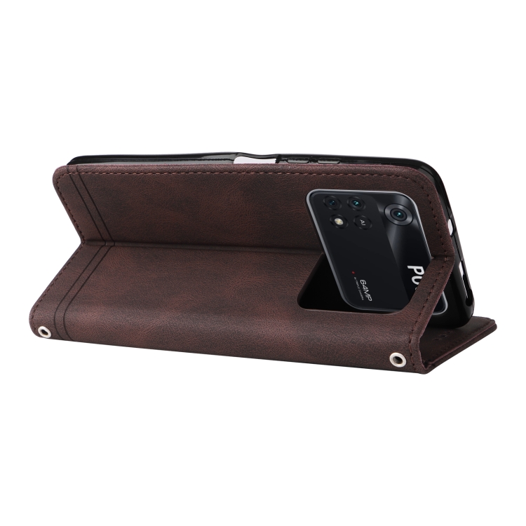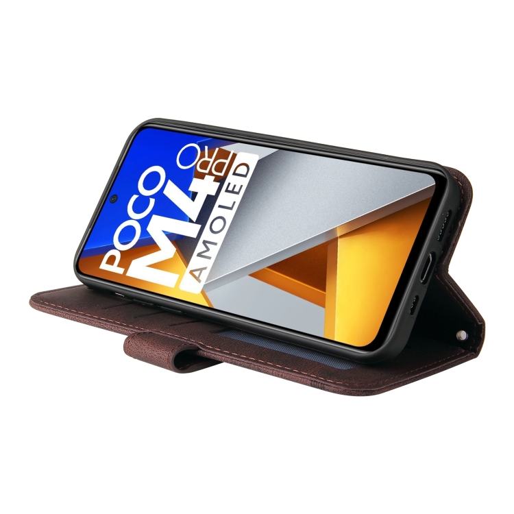 For Xiaomi Poco M4 Pro 4G Skin Feel Life Tree Metal Button Horizontal Flip Leather Case(Brown)