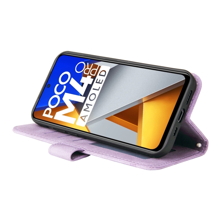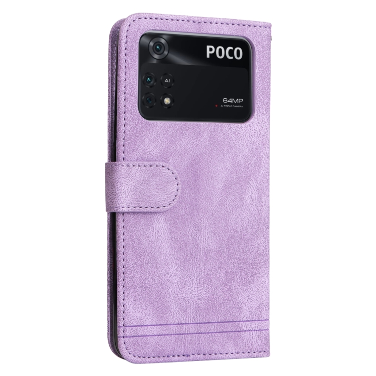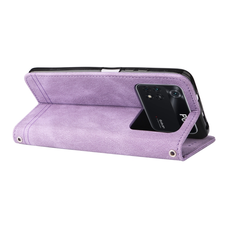 For Xiaomi Poco M4 Pro 4G Skin Feel Life Tree Metal Button Horizontal Flip Leather Case(Purple)