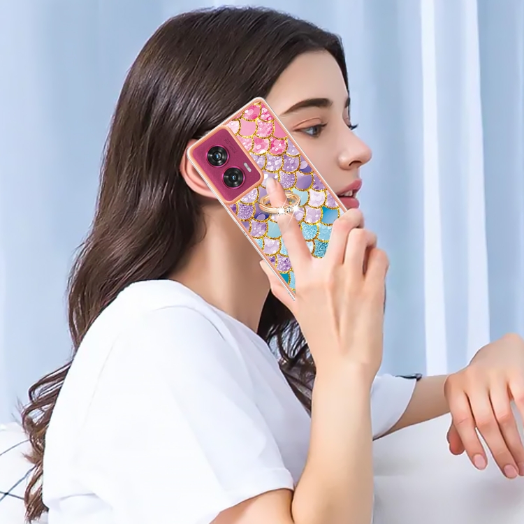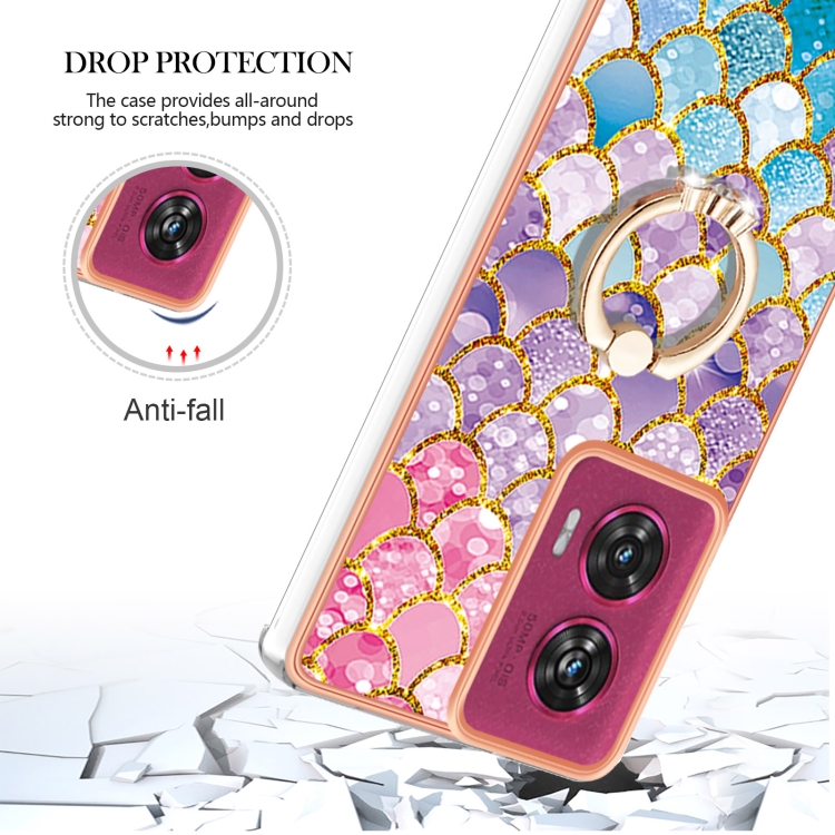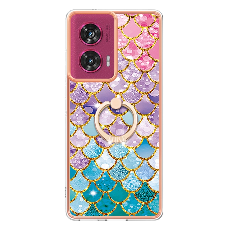 Funda TPU a Prueba de Golpes con Patrón Galvanoplastia y Soporte Anillo para Motorola Edge 50 Fusion (Escamas de Colores)