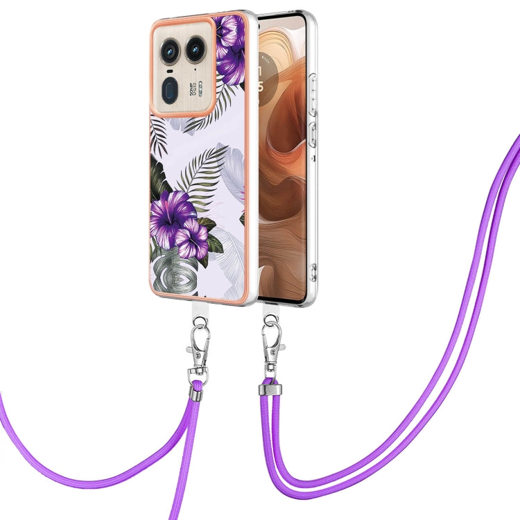 Funda TPU a Prueba de Golpes con Patrón Galvanoplastia Imd para Motorola Edge 50 Ultra con Cordón (Flor Morada)