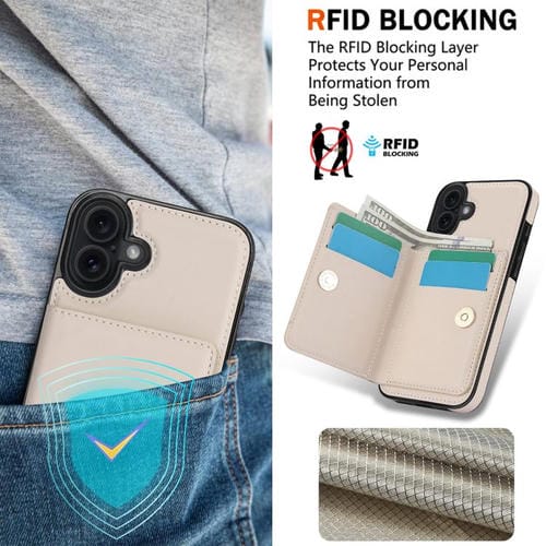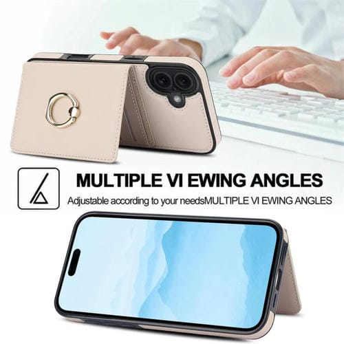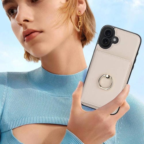 Funda antirrobo RFID para iPhone 17 con anillo para tarjetas (blanca)