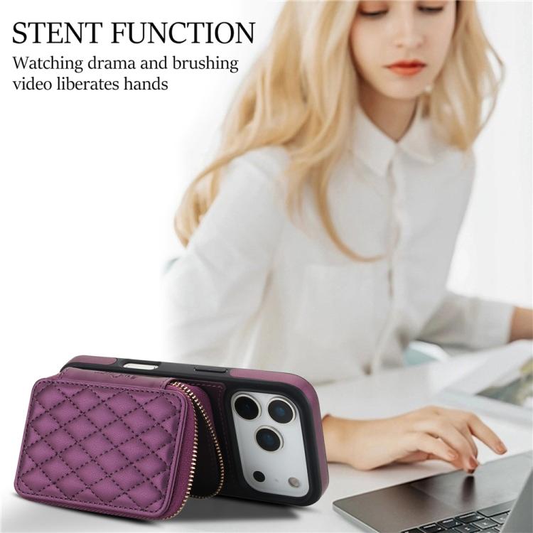 Funda AwQuer con cierre cruzado y parte trasera de cuero romboidal para iPhone 17 Pro (morado oscuro)