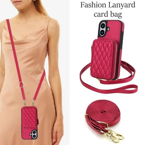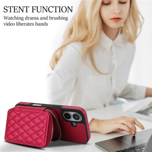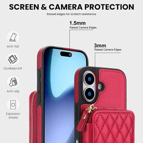 Funda AwQuer con cierre cruzado y parte trasera de cuero romboidal para iPhone 17 (roja)