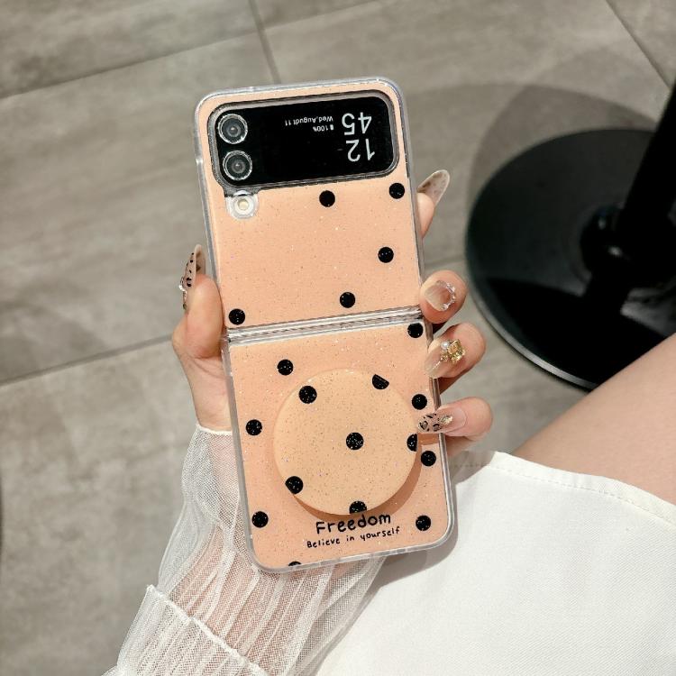 Funda con soporte para Samsung Galaxy Z Flip4 con diseño de puntos brillantes (dorada)