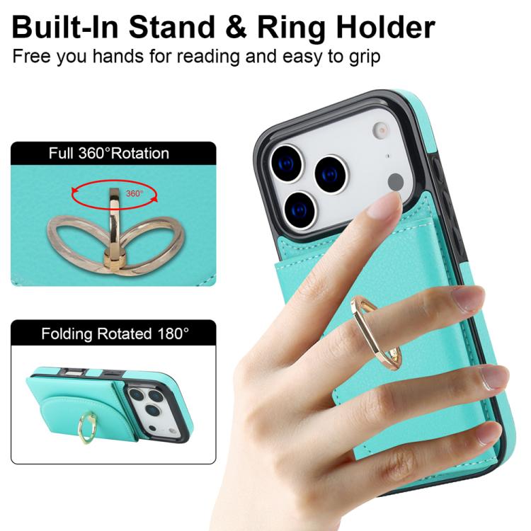 Funda con tarjetero y anillo para iPhone 17 Pro Max (verde)