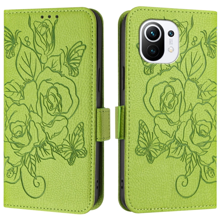 Funda de Cuero Antirrobo con Rfid y Diseño de Rosas En Relieve para Xiaomi Mi 11 (Verde)