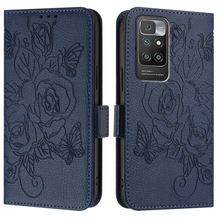 Funda de Cuero Antirrobo con Rfid y Relieve Rosa para Redmi 10 4G 2021/2022 (Azul Oscuro)