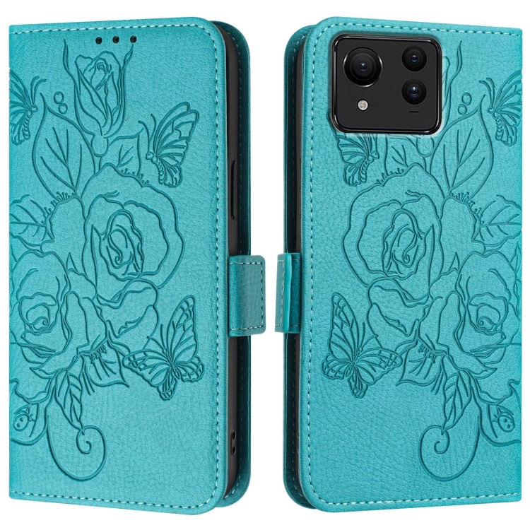 Funda de Cuero Antirrobo RFID con Relieve para Asus Zenfone 11 Ultra (Azul Claro)