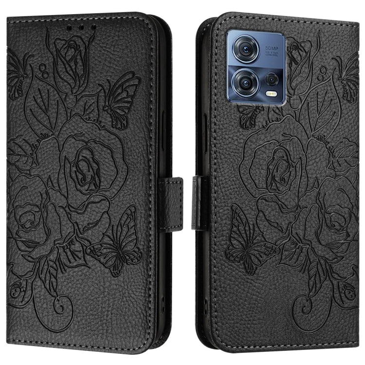 Funda de Cuero Antirrobo RFID con Relieve para Motorola Moto G72 (Negro)