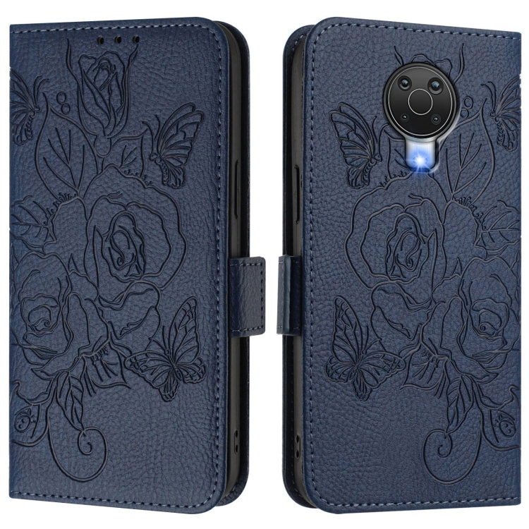 Funda de Cuero Antirrobo RFID con Relieve en Rosa para Nokia 6.3/G20/G10 (Azul Oscuro)
