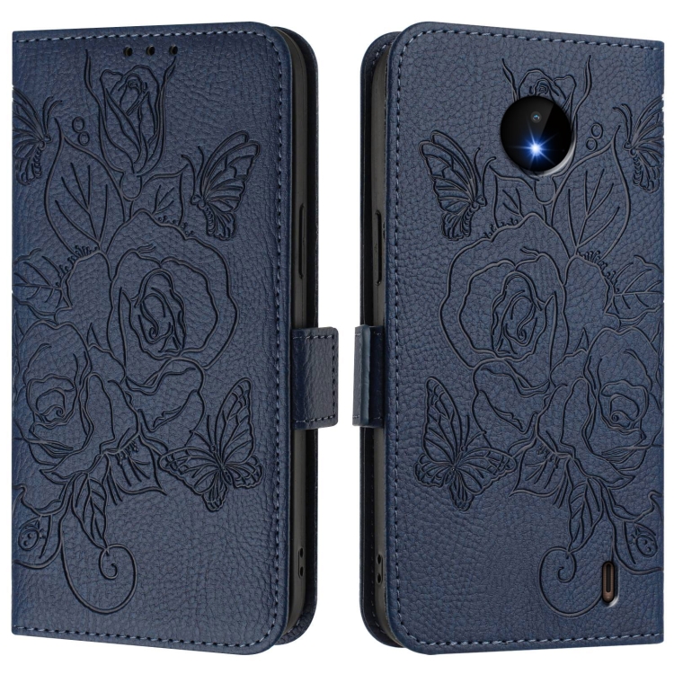 Funda de Cuero Antirrobo RFID con Relieve en Rosa para Nokia C10/C20 (Azul Oscuro)