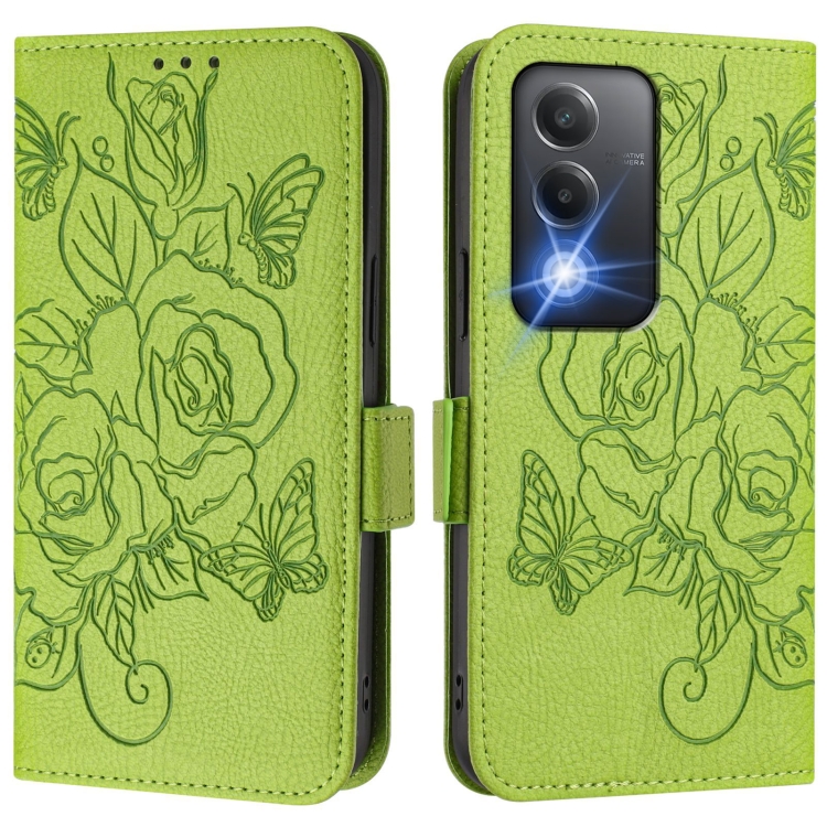 Funda de Cuero Antirrobo Rfid con Relieve En Rosa para Oppo A3 Pro 5G (Verde)