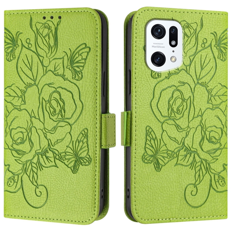 Funda de Cuero Antirrobo Rfid con Relieve En Rosa para Oppo Find X5 Pro (Verde)