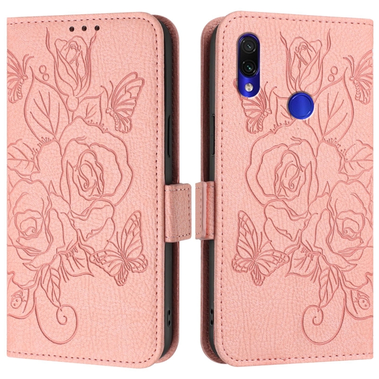Funda de Cuero Antirrobo Rfid con Relieve En Rosa para Redmi Note 7/7 Pro/7S (Rosa)