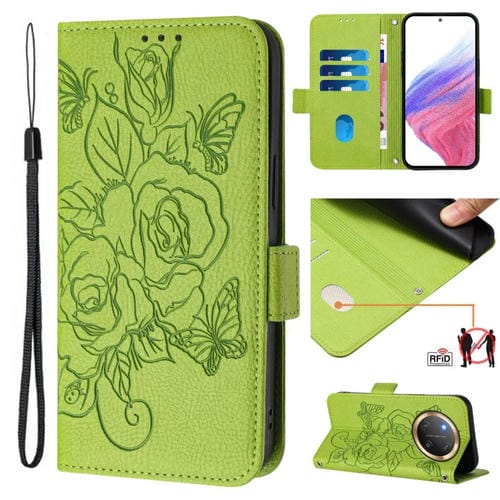 Funda de Cuero Antirrobo RFID con Relieve Rosa para Honor X9C 5G (Verde)