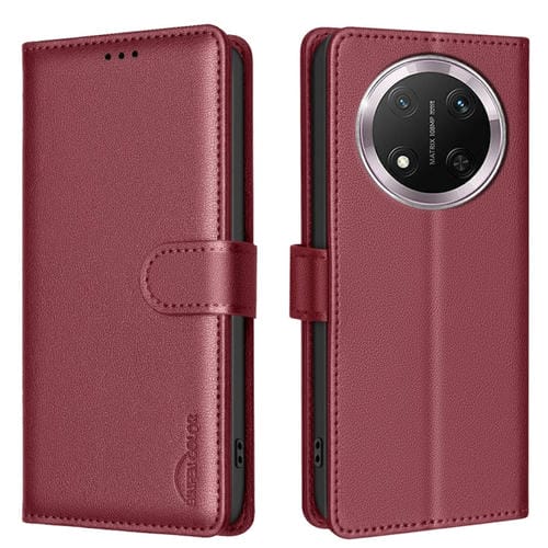 Funda de Cuero Antirrobo RFID con Textura Litchi para Honor X9C 5G (Rojo)
