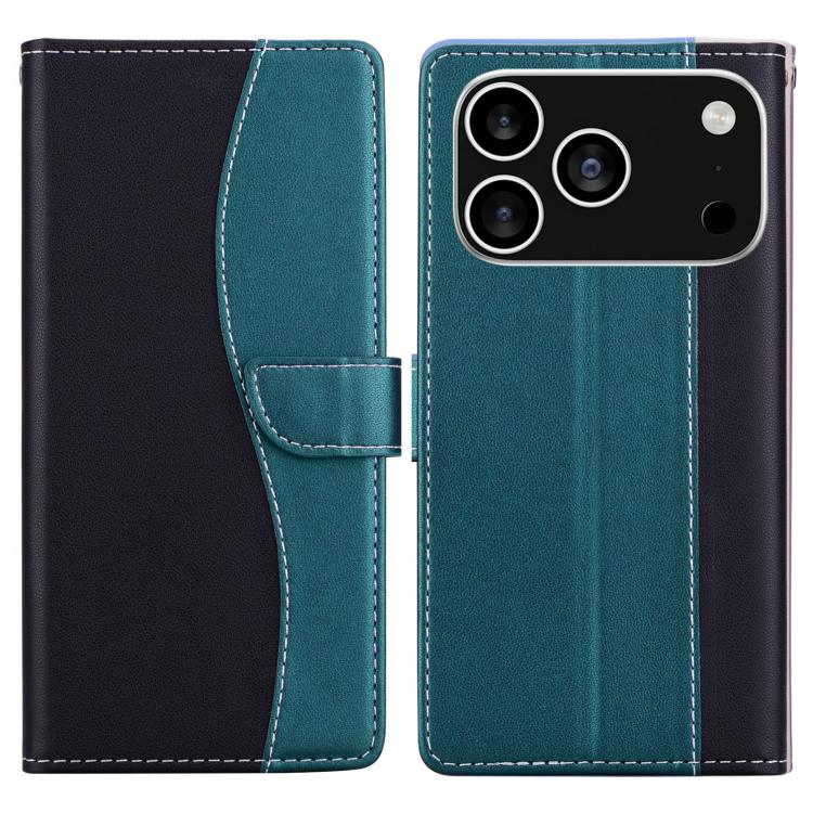 Funda de cuero bicolor con relieve para iPhone 17 Pro (negro y verde)