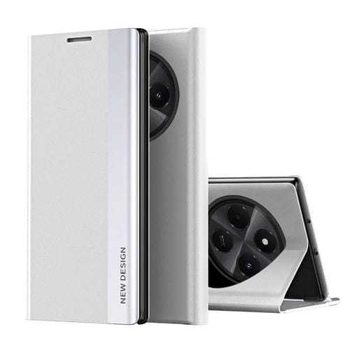 Funda de Cuero con Adsorción Lateral Galvanizada para Xiaomi Redmi 14C (Plateada)
