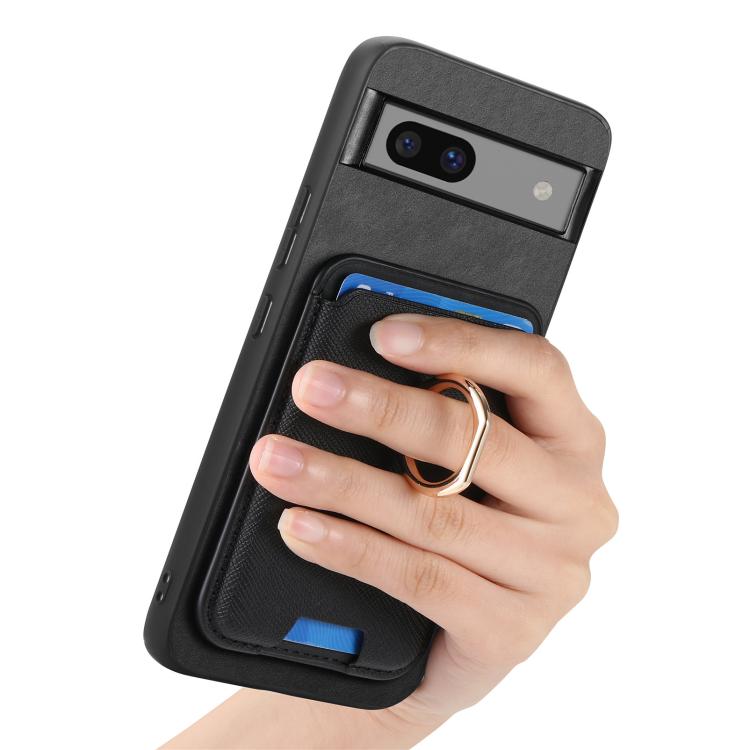 Funda de Cuero con Anillo Cruzado Retro para Google Pixel 7 con Ranuras para Tarjetas (Negro)