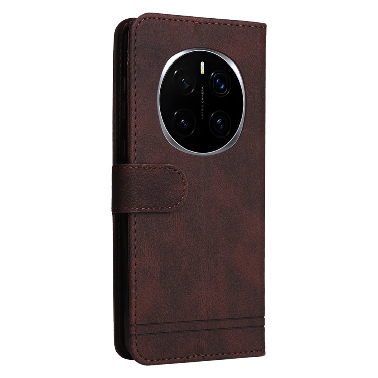 Funda de Cuero para Honor Magic7 Pro con Botones de Metal y Diseño Árbol de la Vida (Marrón)