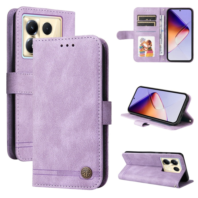 Funda de Cuero para Infinix Note 40 5G con Botones de Metal y Diseño Árbol de la Vida (Morado)
