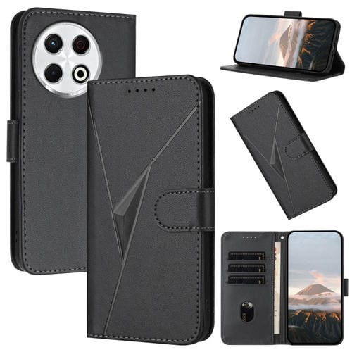 Funda de Cuero para Tecno Spark 30 Pro 4G con Cierre de Hebilla y Diseño Triangular (Negro)