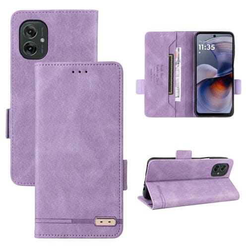 Funda de Cuero con Cierre Magnético para Motorola Moto G55 5G (Morado)
