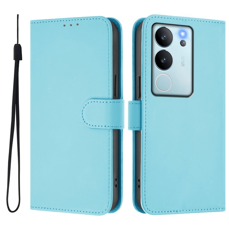 Funda de Cuero con Cordón para Teléfono con Sensación de Piel Global para Vivo V30 Lite 5G (Azul Cielo)