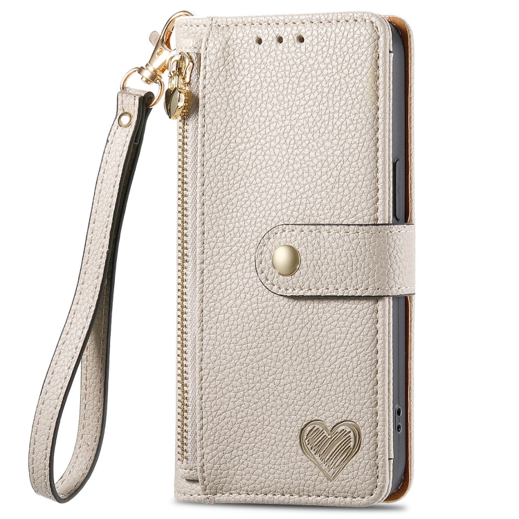 Funda de Cuero con Cordón y Cremallera Love para Motorola Moto G75 5G (Gris)
