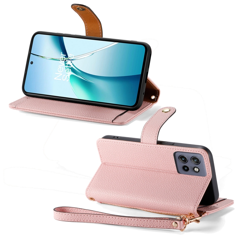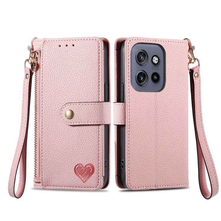 Funda de Cuero con Cordón y Cremallera Love para Motorola Moto S50 (Rosa)
