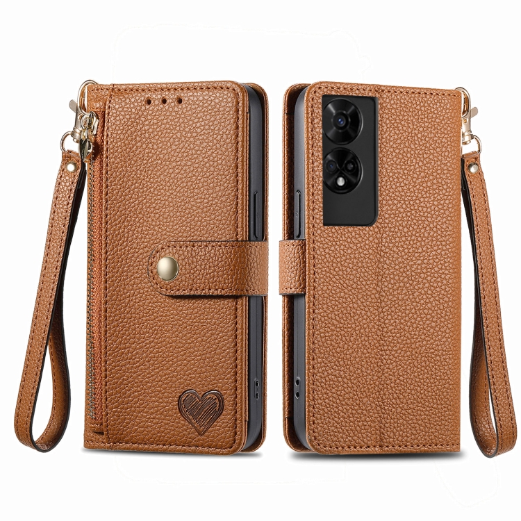 Funda de Cuero con Cordón y Cremallera Love para TCL 50 5G (Marrón)