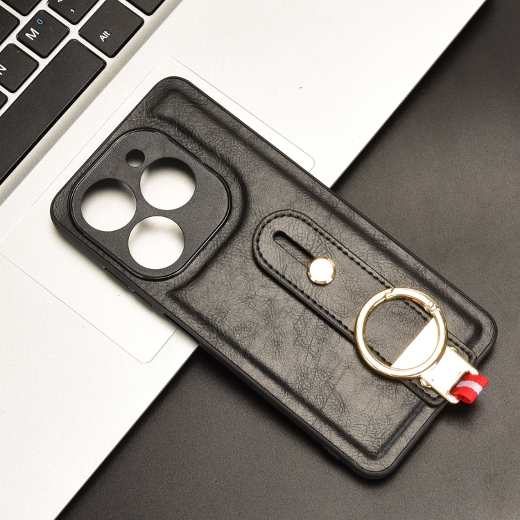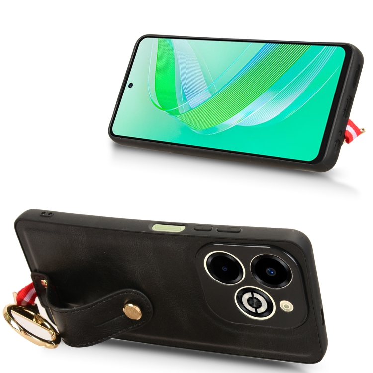 Funda de Cuero con Correa para Cuello para Infinix Smart 8 Plus/Smart 8 Pro (Negra)