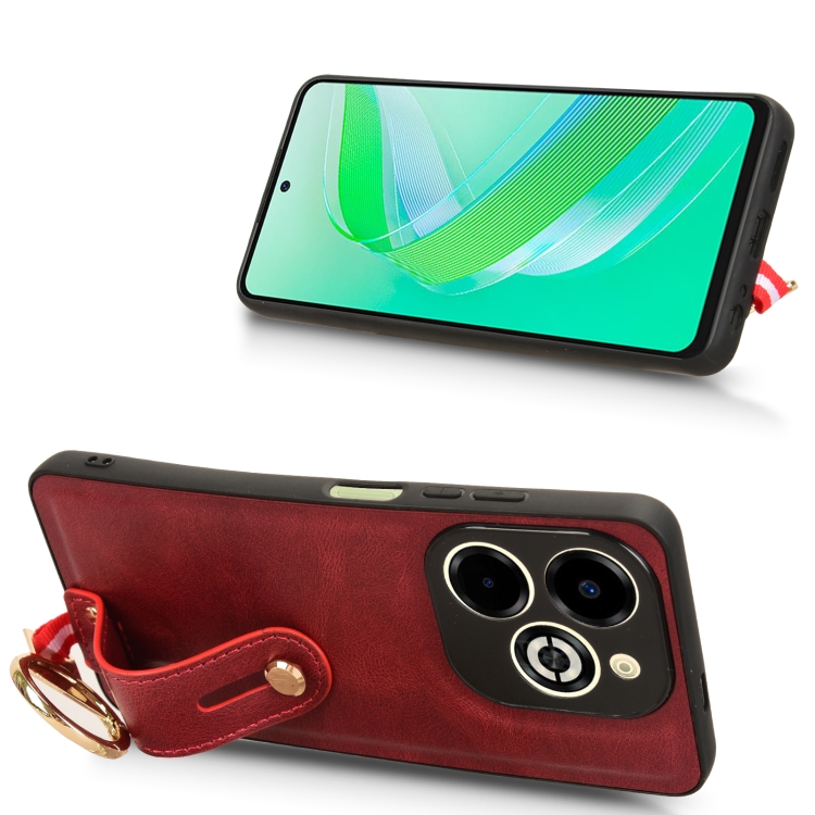 Funda de Cuero con Correa para El Cuello para Infinix Smart 8 Plus y Smart 8 Pro (Rojo)