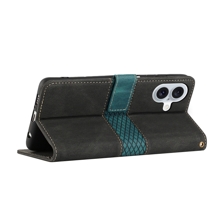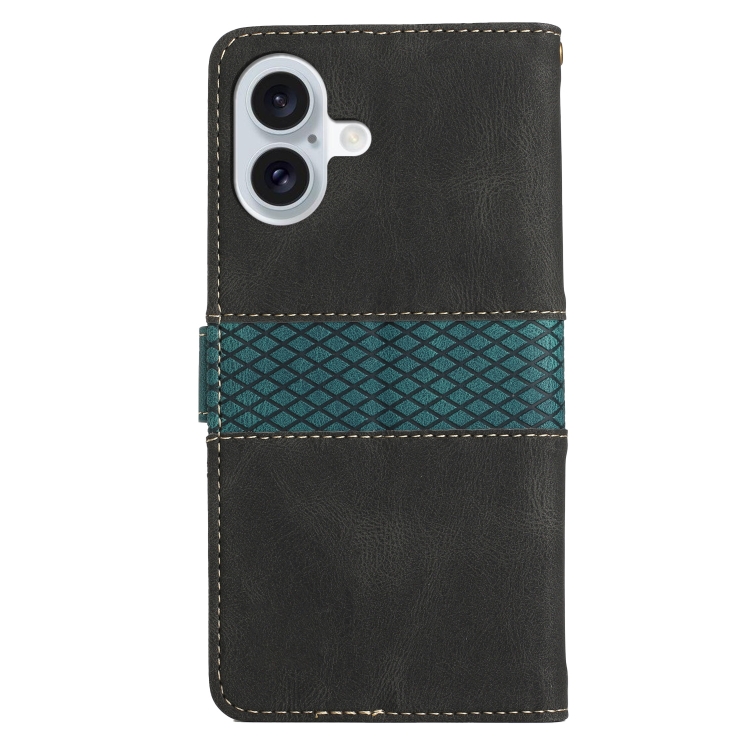 Funda para iPhone 16 de Cuero con Costuras en Cuadrícula y Cordón (Negro)