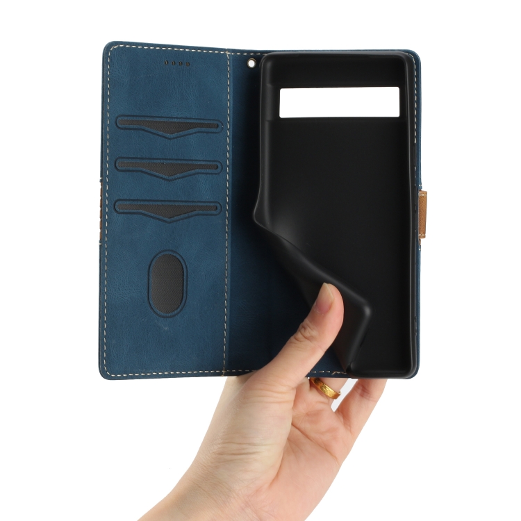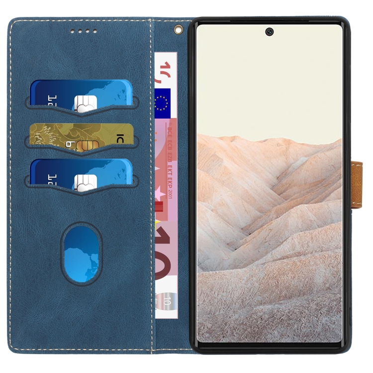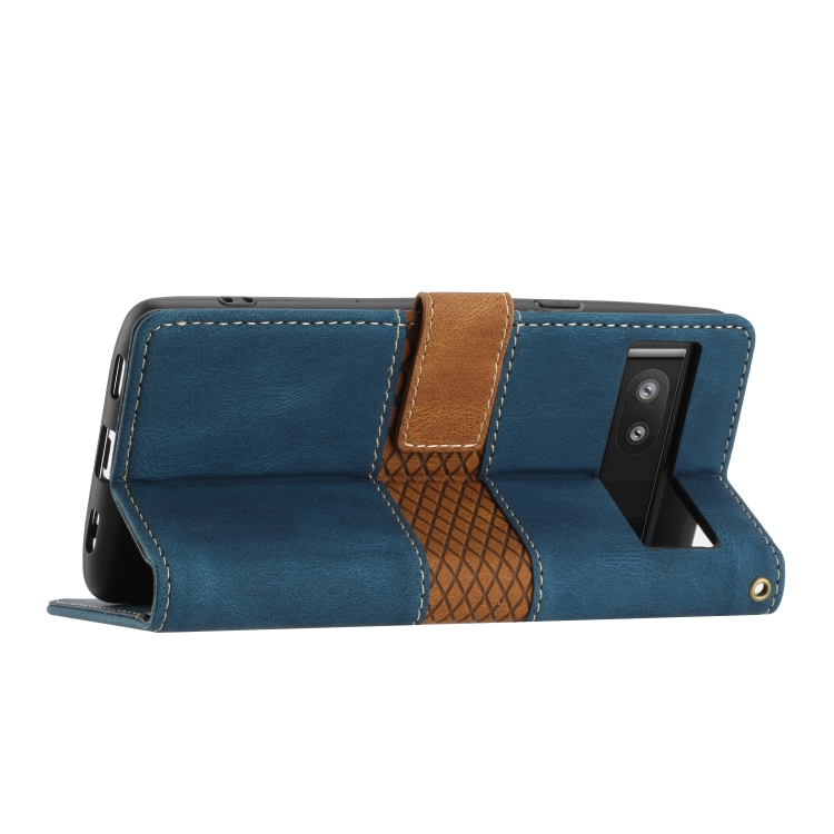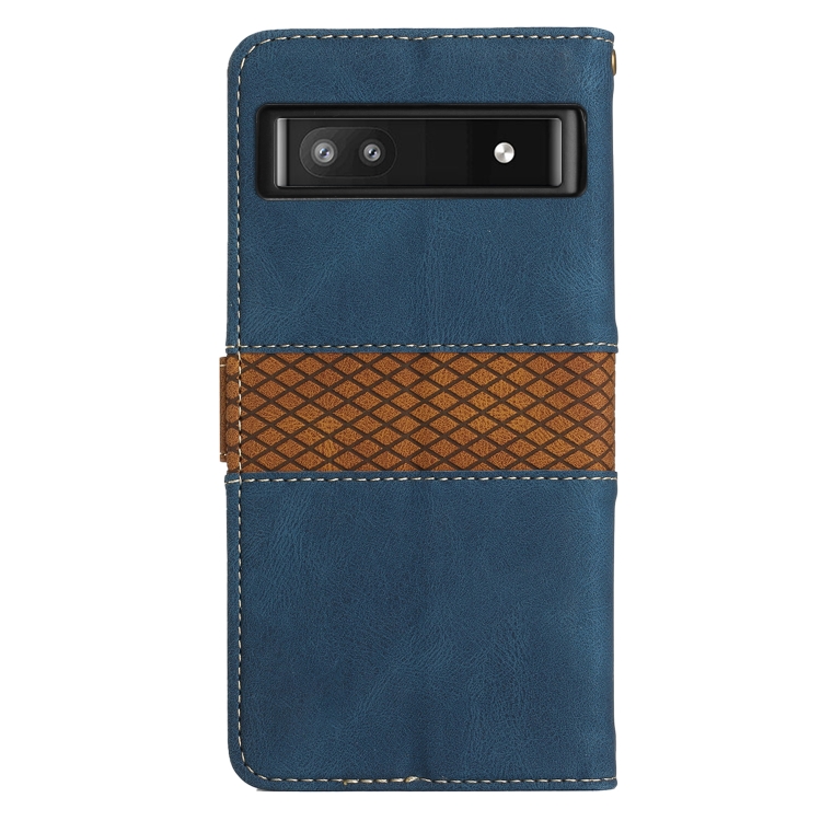 Funda de Cuero con Costuras en Cuadrícula para Google Pixel 7A con Cordón (Azul)
