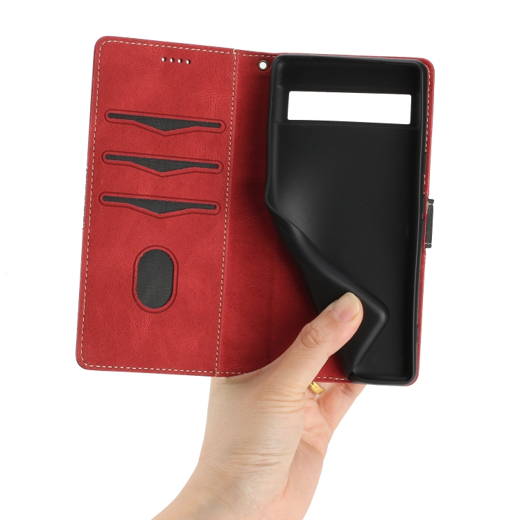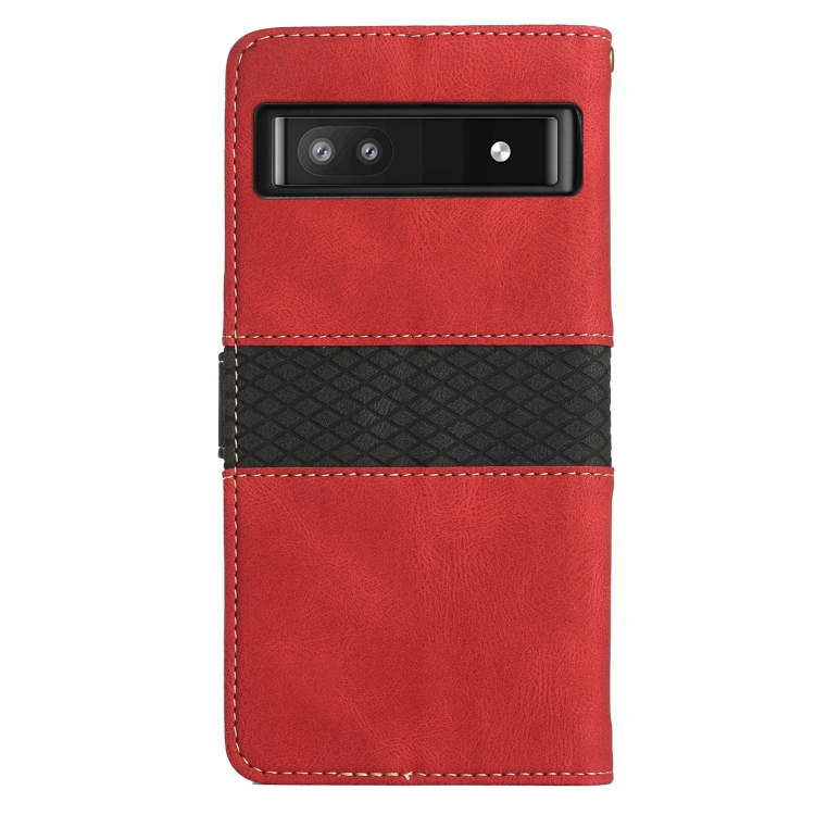 Funda de Cuero para Google Pixel 7A con Costuras en Cuadrícula y Cordón (Rojo)