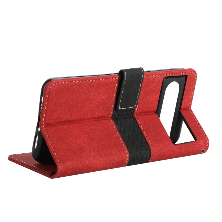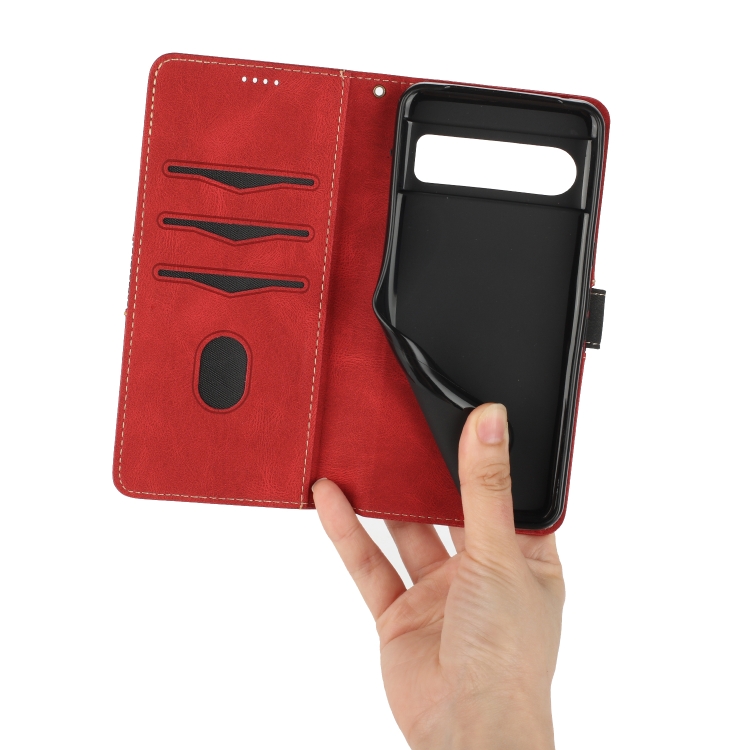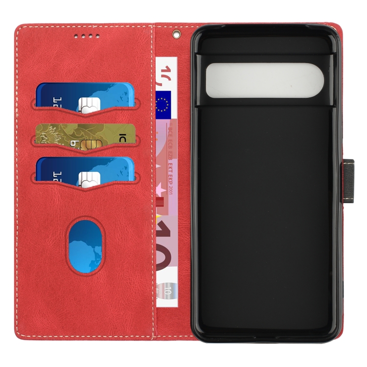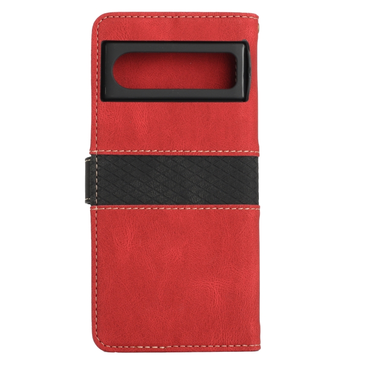 Funda de Cuero Google Pixel 8 Pro con Costuras en Cuadrícula y Cordón (Rojo)