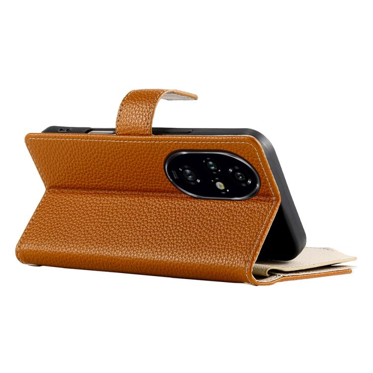 Funda de cuero con cremallera para teléfono con múltiples tarjetas y costuras para Honor 200 Pro (marrón)