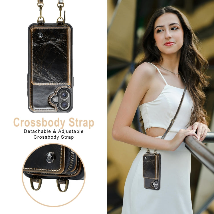 Funda de Cuero Jeehood C22 Series para iPhone 16 con Cremallera y Cordón Doble (Café)